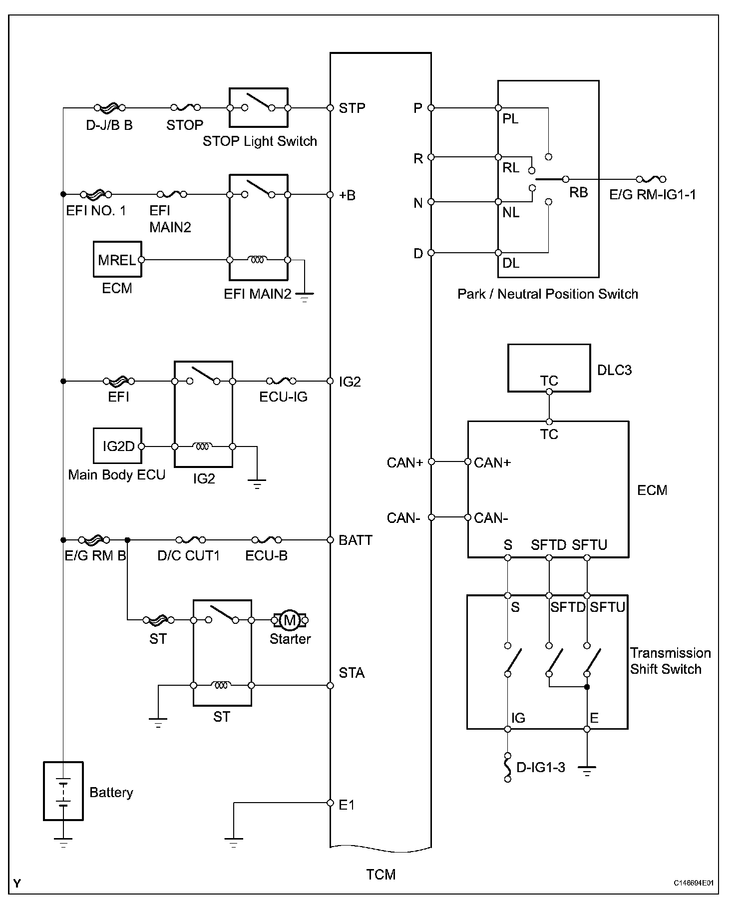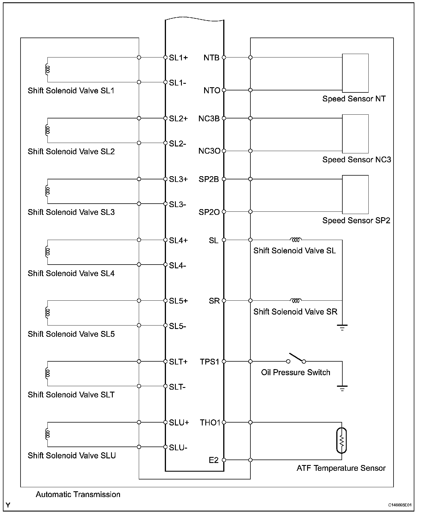 SYSTEM DIAGRAMThe configuration of the electronic control system in the AA80E automatic transmission is as shown in the following chart.