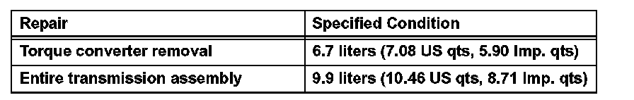 (a) Fill the transmission with the amount of fluid listed in the table.
