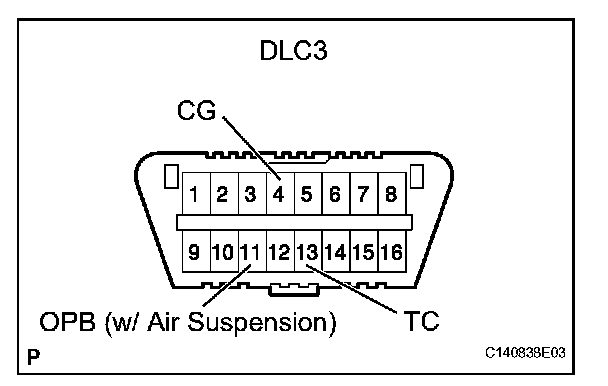 (a) w/o Air Suspension: Using SST, connect terminals 13 (TC) and 4 (CG) of the DLC3.