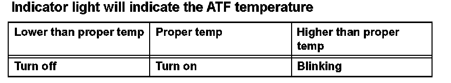 Indicator light will indicate the ATF temperature: