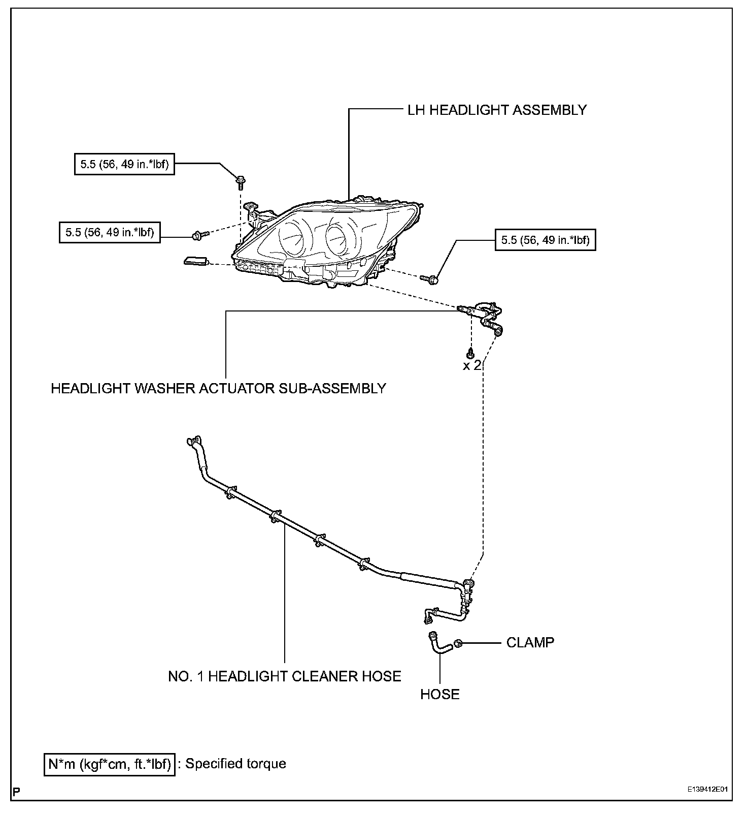 b. Connect the hose to the headlight cleaner motor and pump.