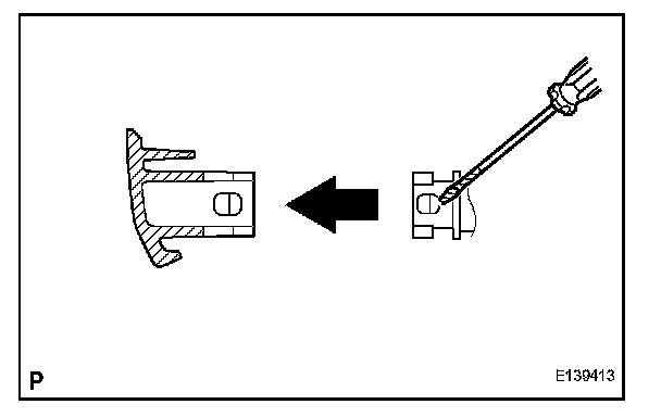 a. Insert the headlight washer actuator into the headlight, and attach the 2 claws to the nozzle case.