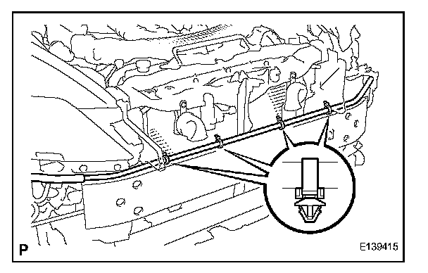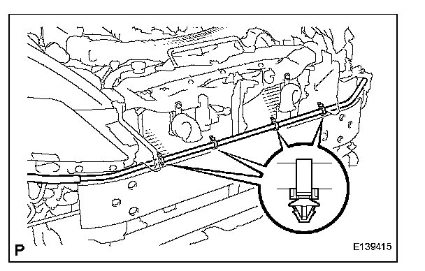 a. Attach the 4 clamps and install the hose to the front bumper reinforcement.