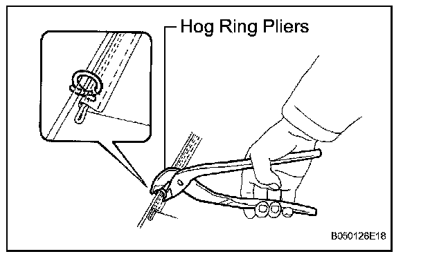 a. Using hog ring pliers, install the seat cushion cover to the seat cushion pad with new hog rings.