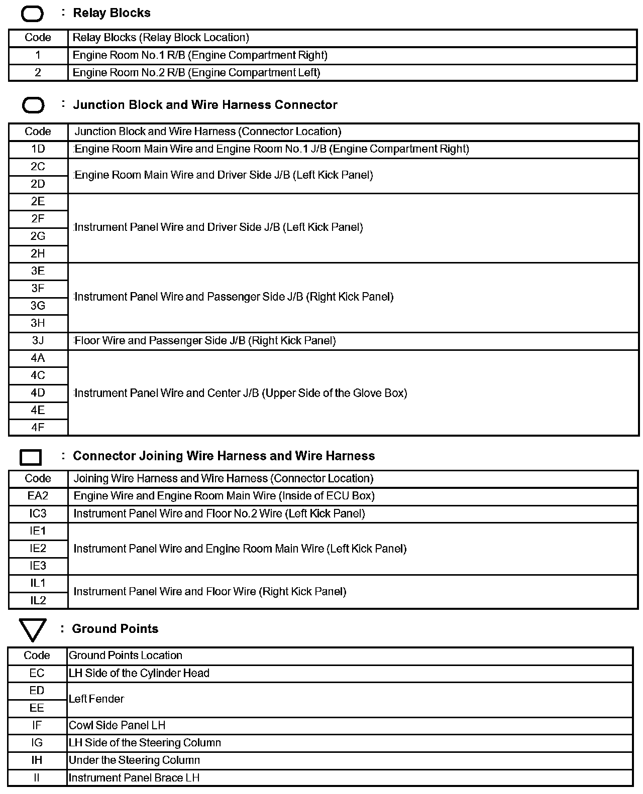 Locations: The locations of components, connectors, ground points, and splices referred to within these diagrams can be found at Vehicle Locations. Locations