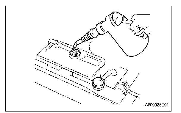 (d) Slowly pour coolant into the radiator reservoir to the FULL line.