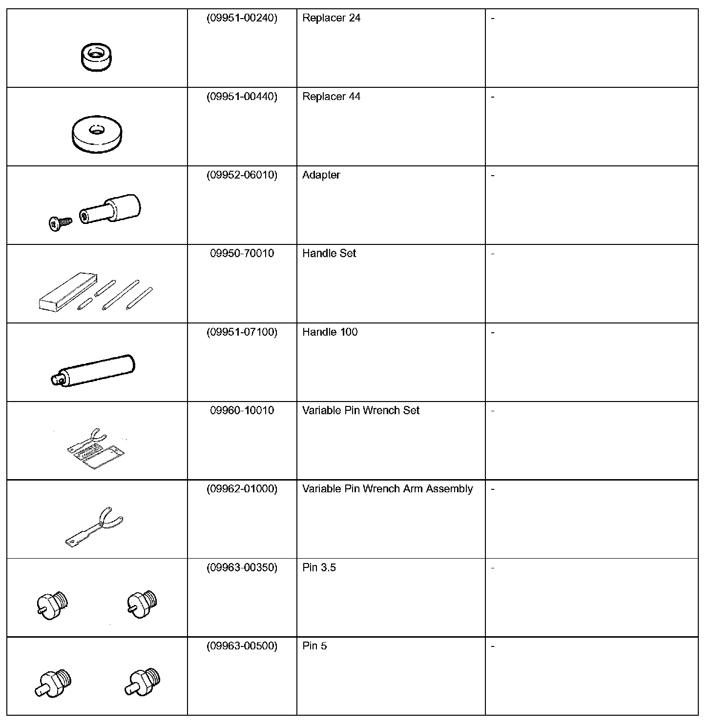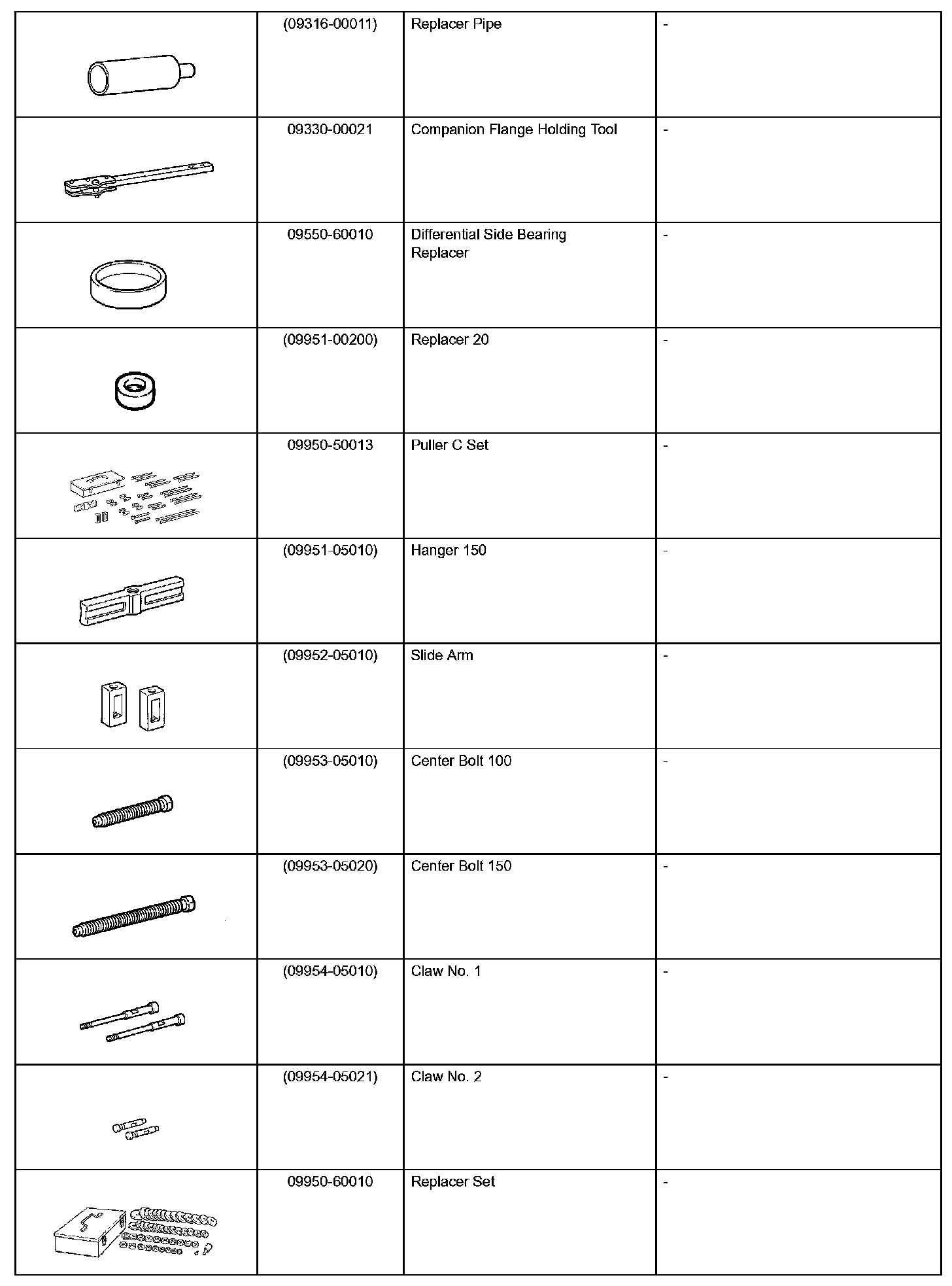 Engine Mechanical - Recommended Tools: