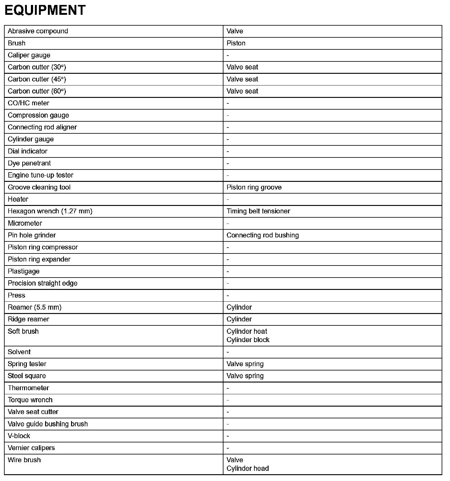 Engine Mechanical - Equipment: