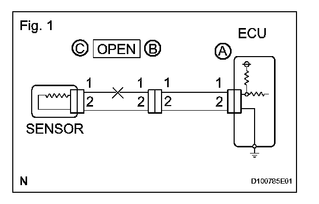 CHECK FOR OPEN CIRCUITa. For an open circuit in the wire harness in Fig. 1, check the resistance or voltage, as described.