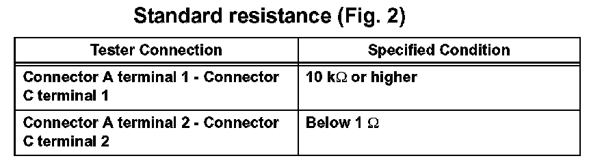 1. Disconnect connectors A and C, and measure the resistance between them.