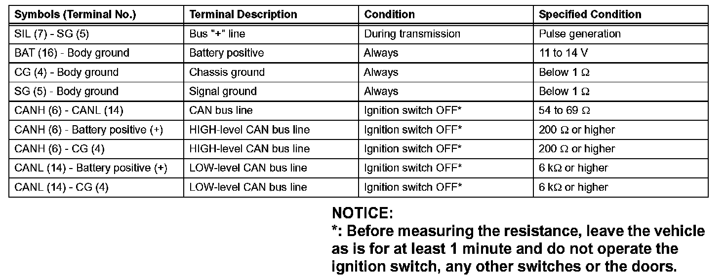 If the result is not as specified, the DLC3 may have a malfunction. Repair or replace the harness and connector.