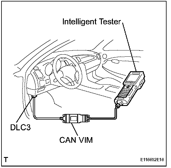 HINT: Connect the cable of the intelligent tester (with CAN VIM) to the DLC3, turn the ignition switch ON and attempt to use the tester. If the screen displays the message UNABLE TO CONNECT TO VEHICLE, there is a problem either with the vehicle or with the tester
