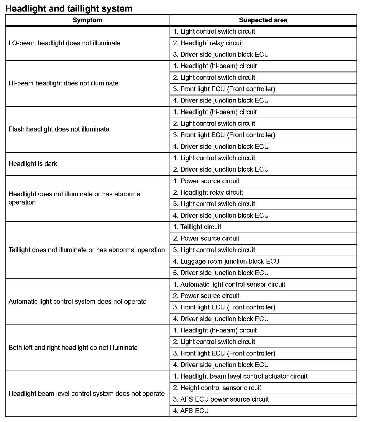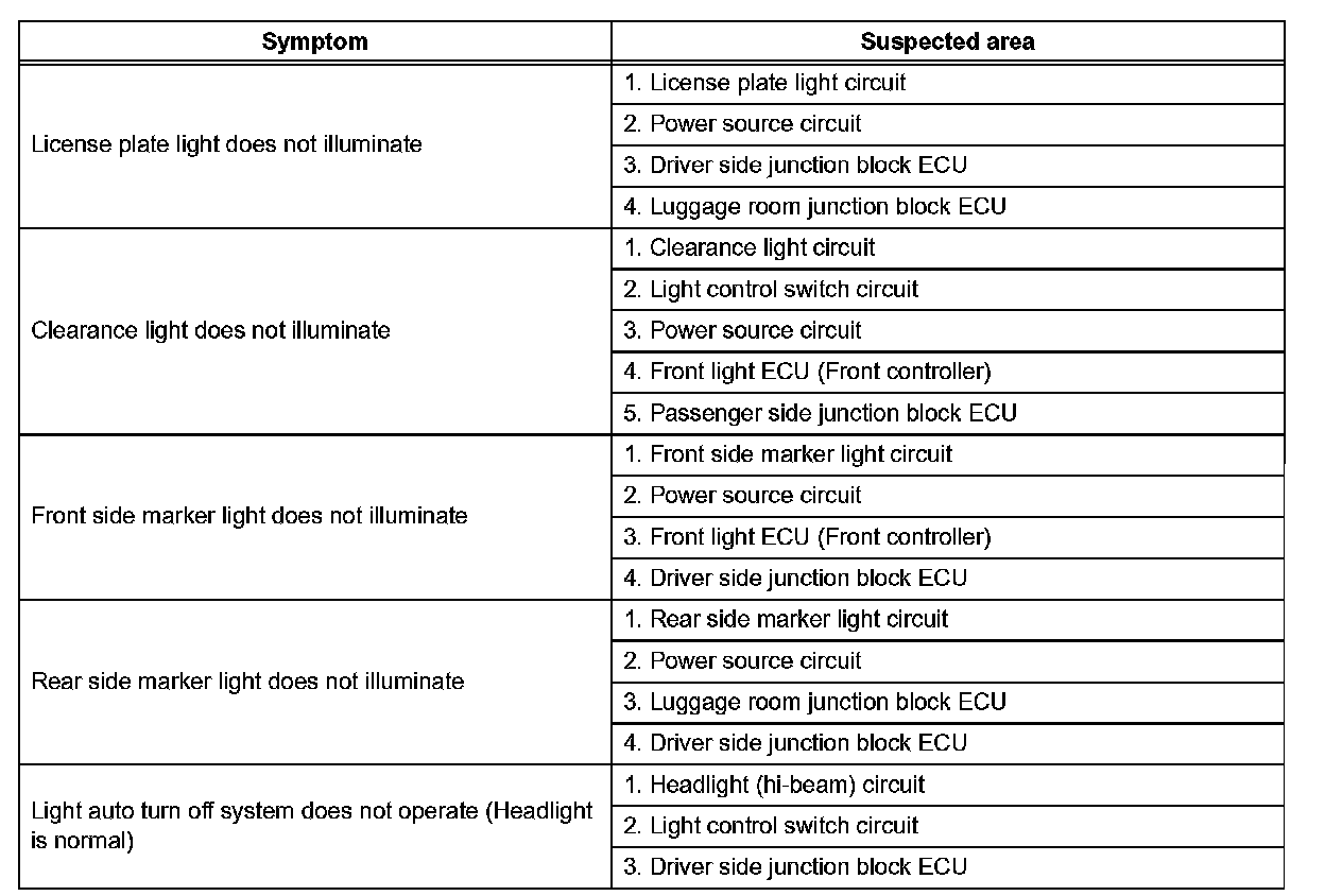 PROBLEM SYMPTOMS TABLEProblem Symptoms Table - Headlight And Taillight System: