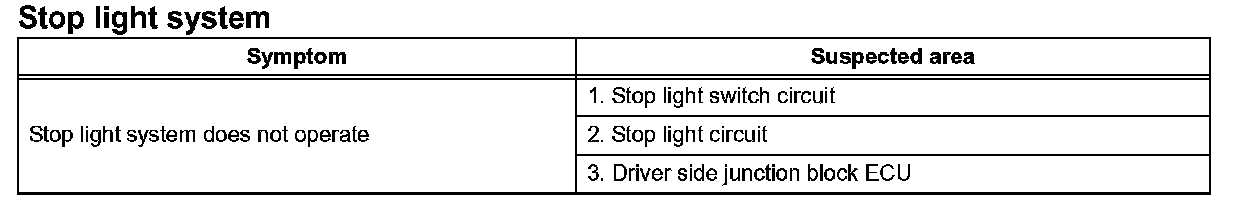 Problem Symptoms Table - Stop Light System (Part 2):