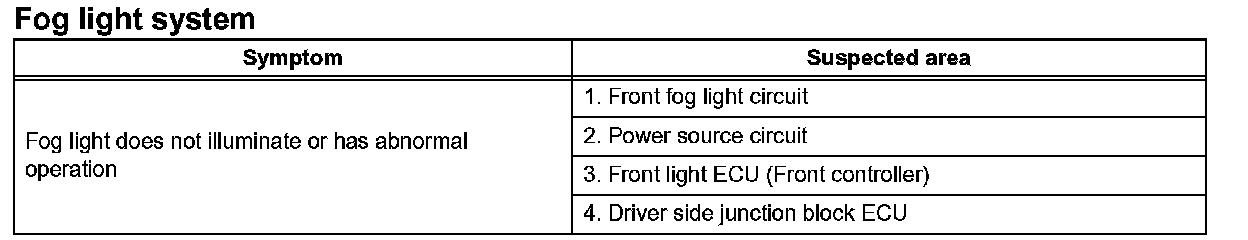 Problem Symptoms Table - Fog Light System:
