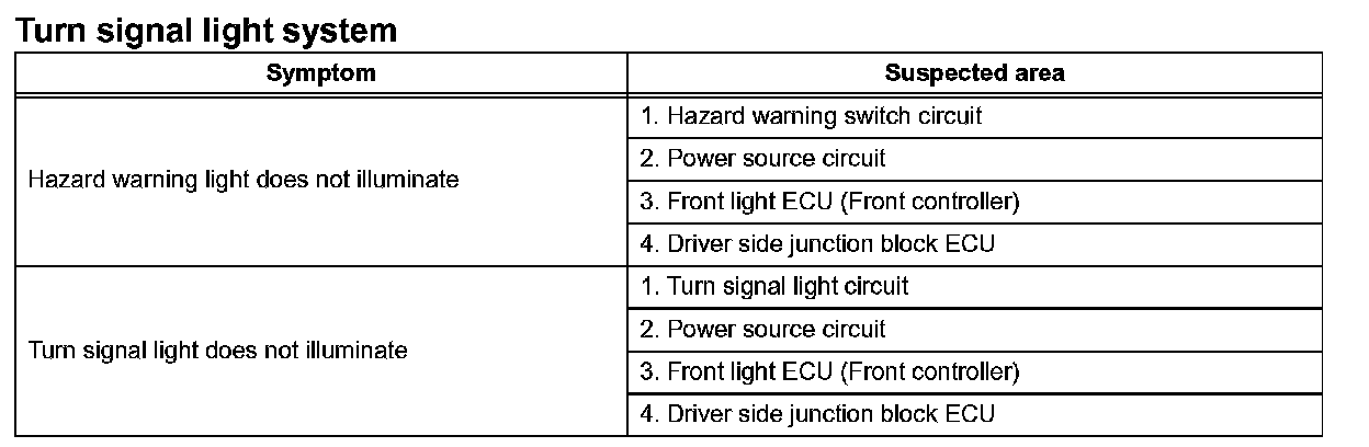 Problem Symptoms Table - Turn Signal Light System: