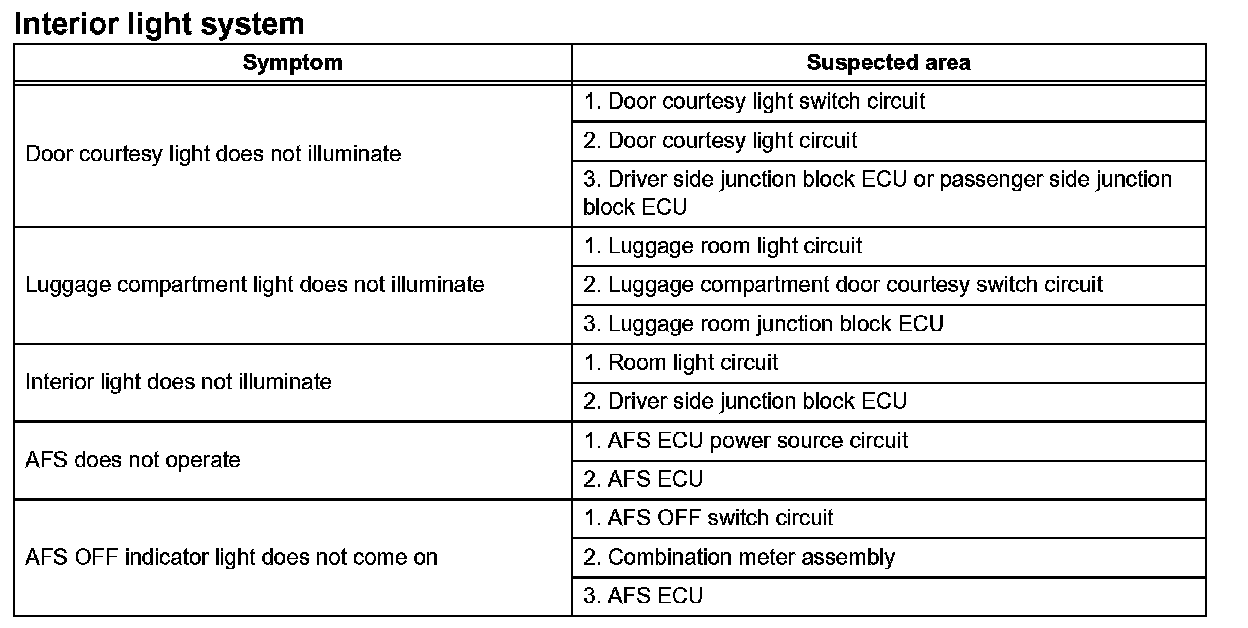 Problem Symptoms Table - Interior Light System: