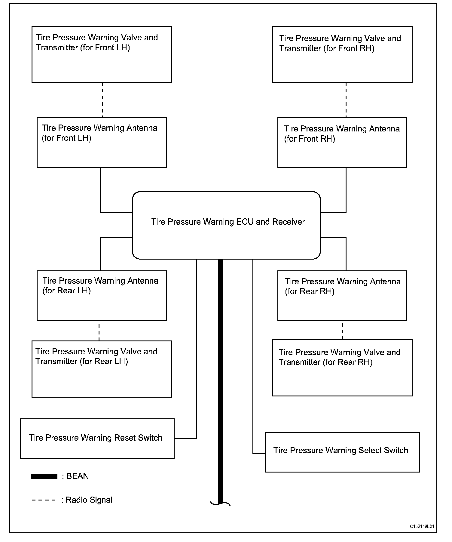 ^ During initialization, the tire pressure warning valve and transmitter measures the inflation pressure of the tires, and registers the signals that are transmitted into the tire pressure warning ECU and receiver at a frequency of one per minute. The initialization process is completed when the signals from all tires have been received.