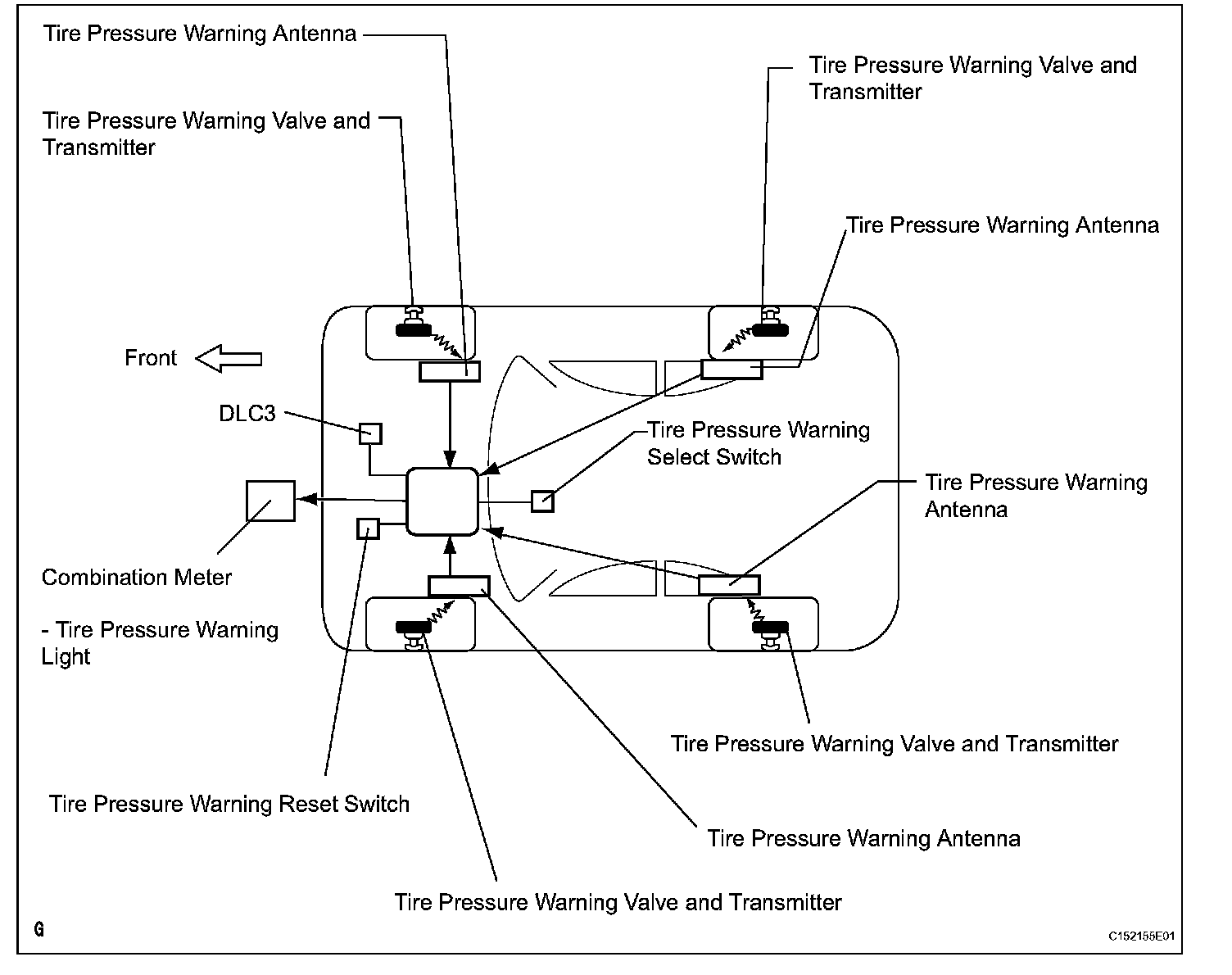 ^ The control ECU can be used to register two sets of transmitter IDs, and can select one or the other using the tire pressure warning select switch. Consequently, there is no need to register the transmitter IDs again each time a tire set is changed.