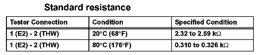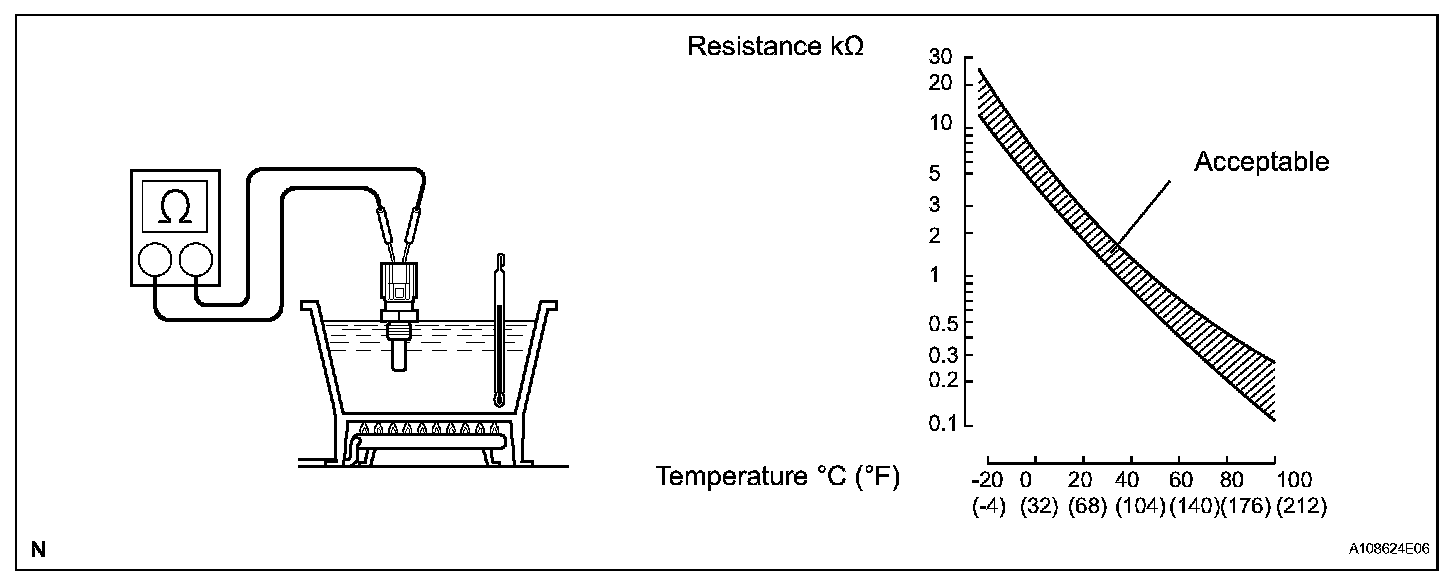 NOTE: If checking the sensor in water, be careful not to allow water to contact the terminals. After checking, wipe the water off the sensor.