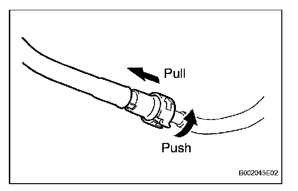 b. Observe the following precautions when disconnecting the fuel tube connectors (quick type):