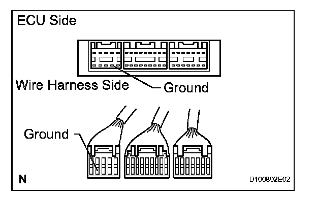 2. Disconnect the ECU connector. Check the ground terminal on the ECU side and wire harness side for bending, corrosion or foreign matter. Lastly, check the contact pressure of the female terminals.