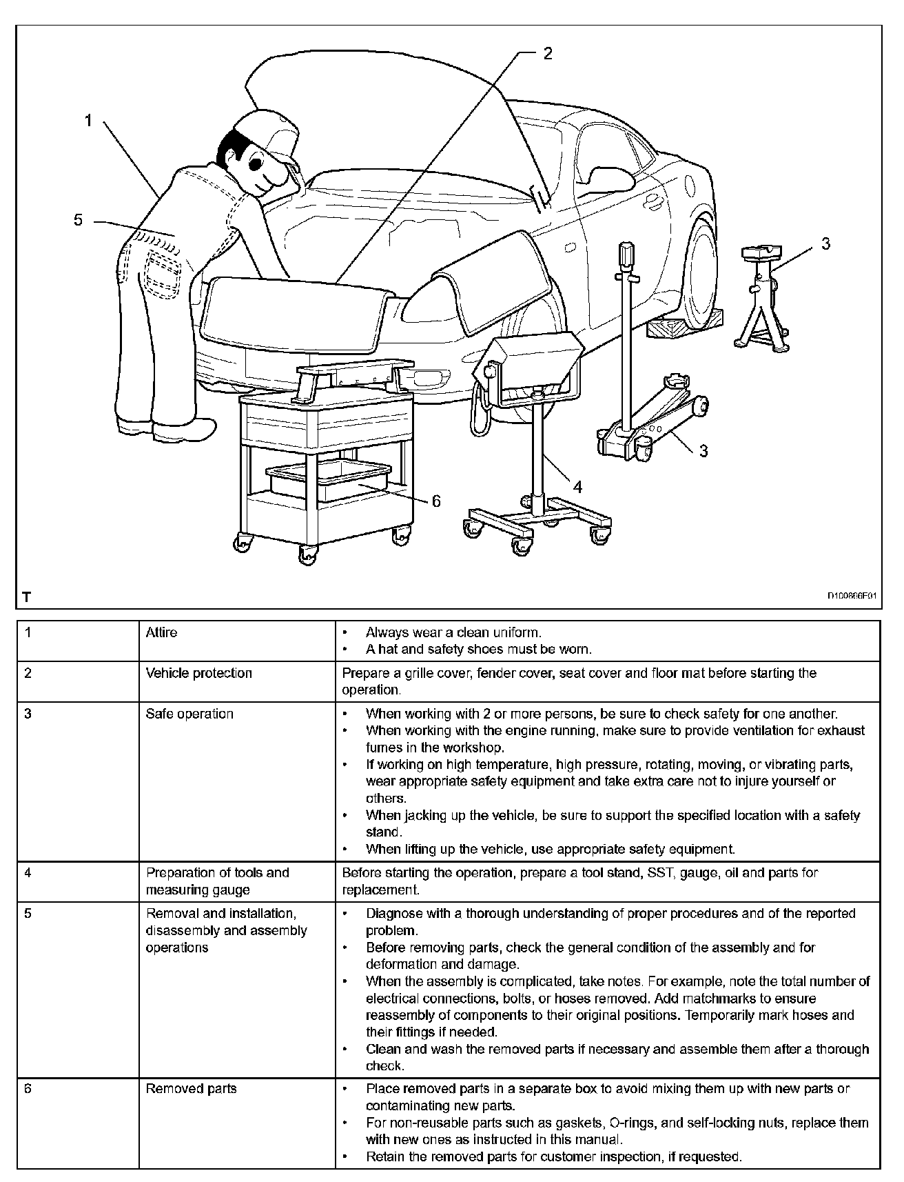 1. Care must be taken when jacking up and supporting the vehicle. Be sure to lift and support the vehicle at the proper locations.