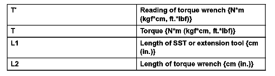 1. Use the formula below to calculate special torque values for situations where SST or an extension tool is combined with a torque wrench.