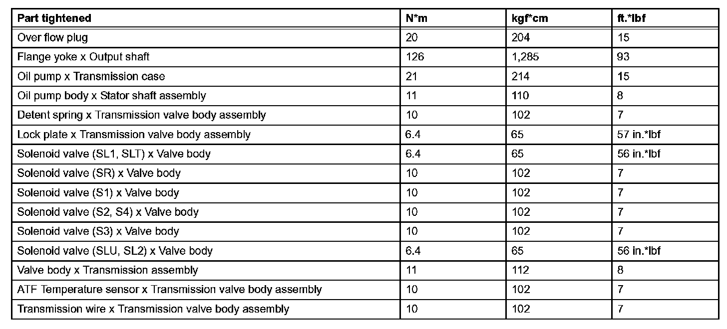 Automatic Transmission - Torque Specifications (Part 1):