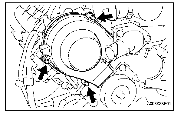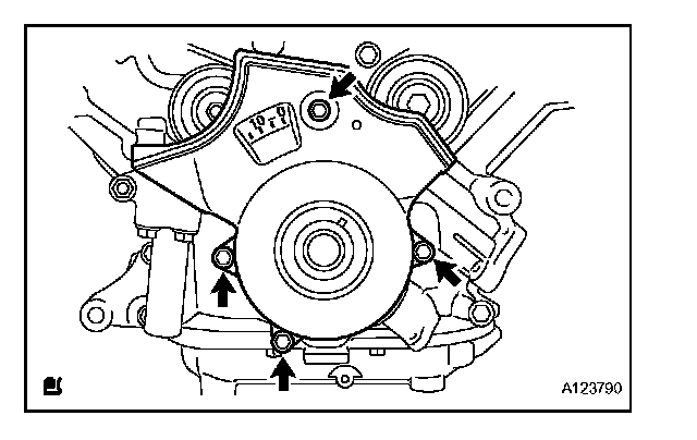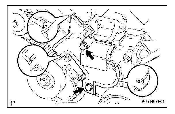 Install the timing belt cover with the 2 bolts.