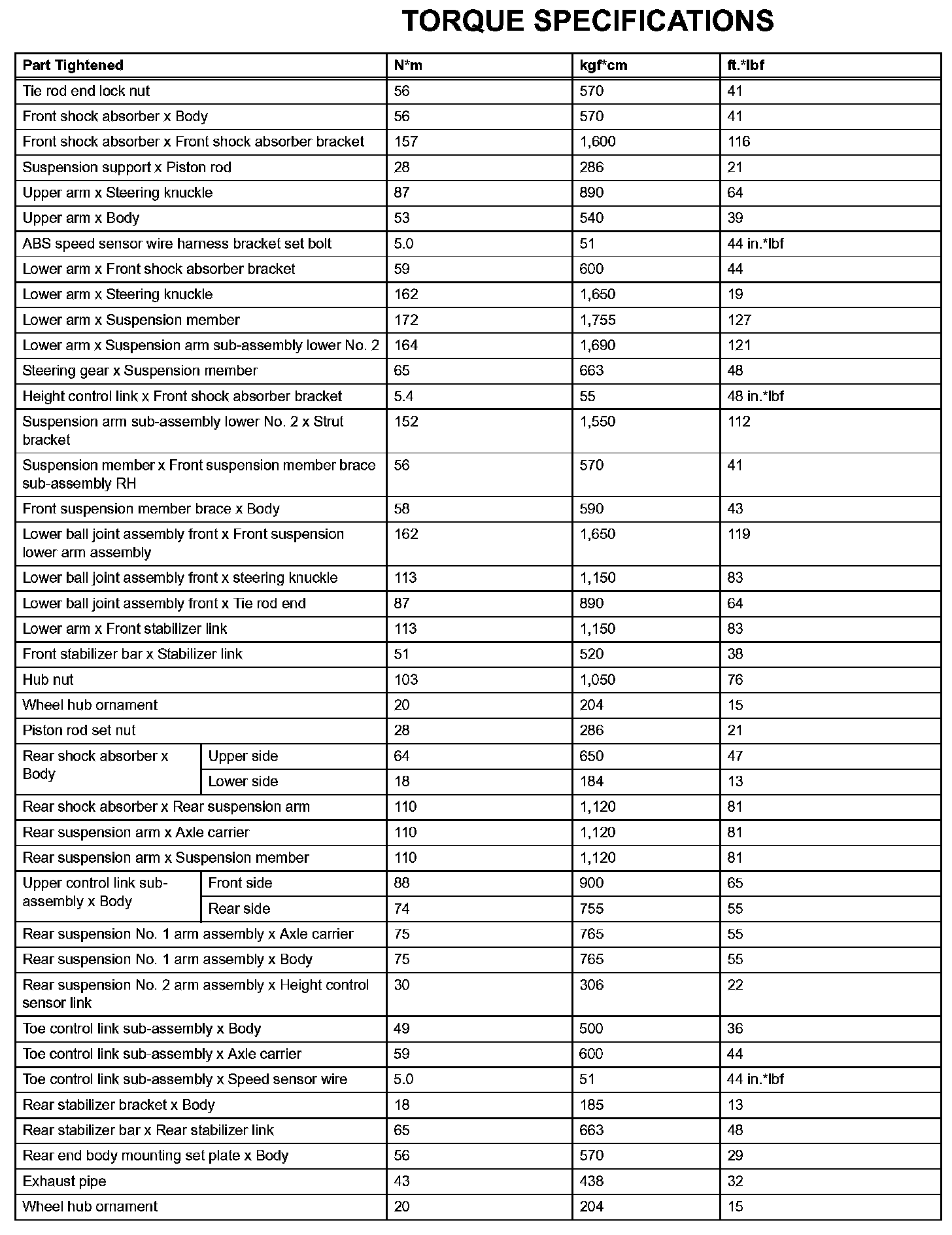 Suspension - Torque Specifications: