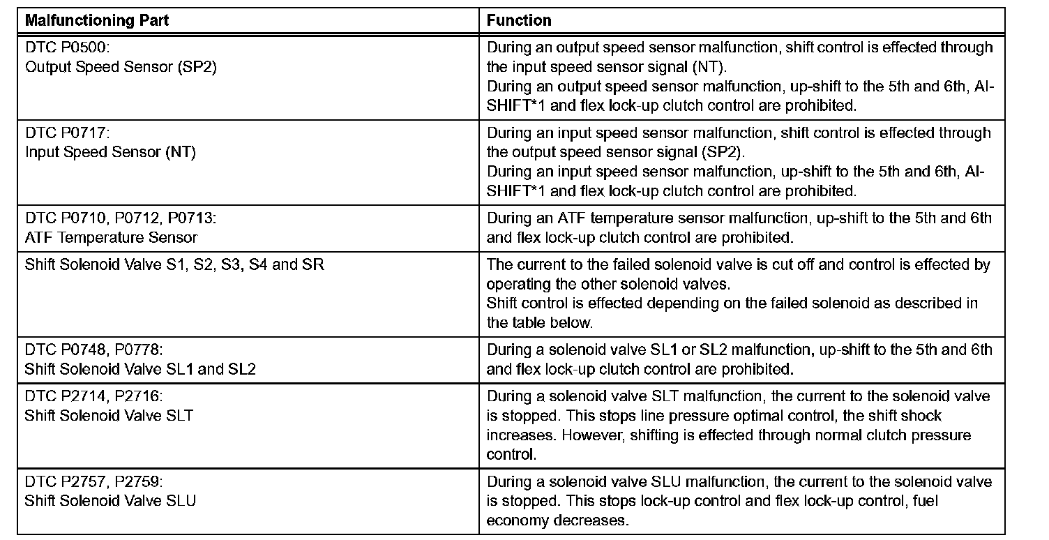 (a) Fail-safe operation for electronically malfunctioning shift solenoid valve (S1, S2, S3, S4 and SR).