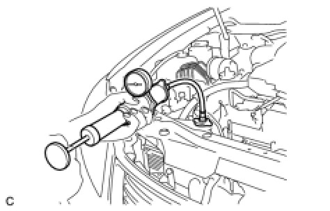 (c) Using a radiator cap tester, increase the pressure inside the radiator to 118 kPa (1.2 kgf*cm, 17 psi), and check that the pressure does not drop.
