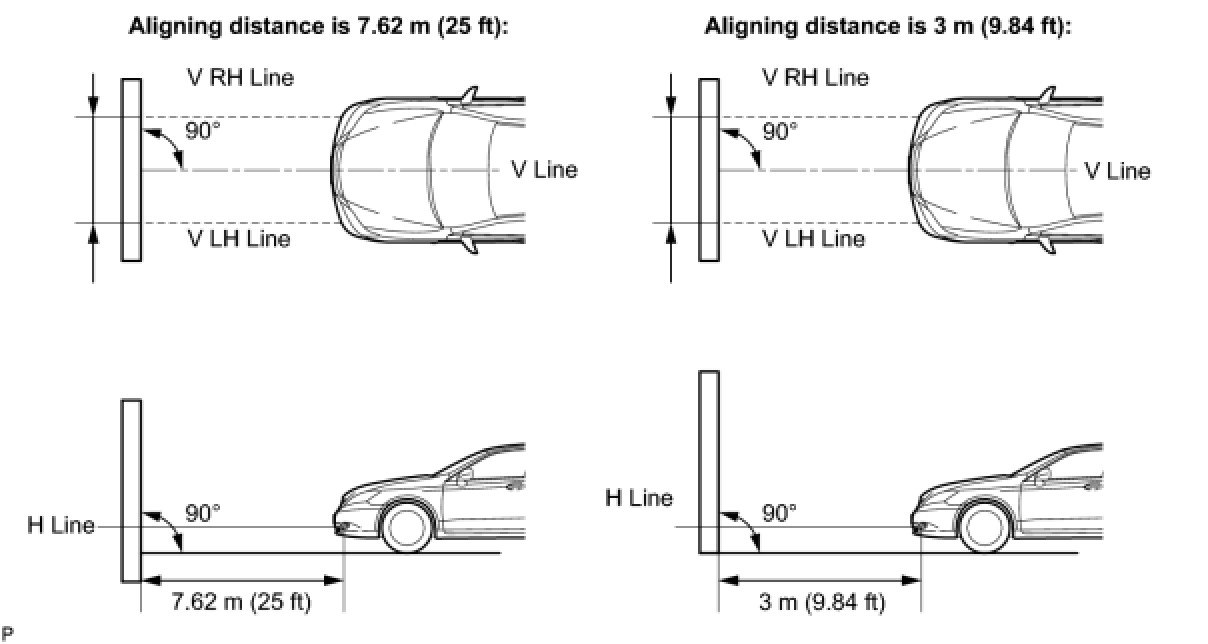 - Create a 7.62 m (25 ft) distance between the vehicle (fog light bulb center) and the wall.