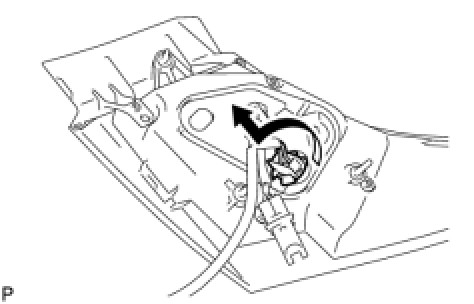 (a) Turn the tail light bulb and the rear light socket and wire in the direction indicated by the arrow and remove them as a unit.