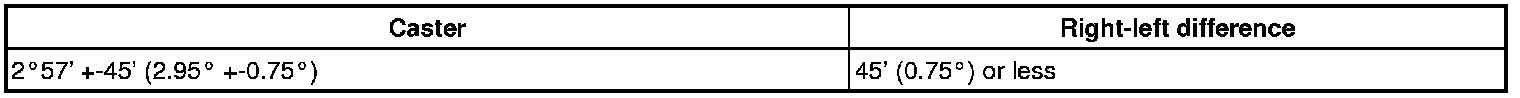 - The maximum tolerance of the right and left difference for the camber and caster is 45' (0.75°) or less.