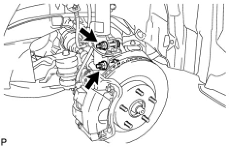 (b) Remove the 2 nuts on the lower side of the front shock absorber.