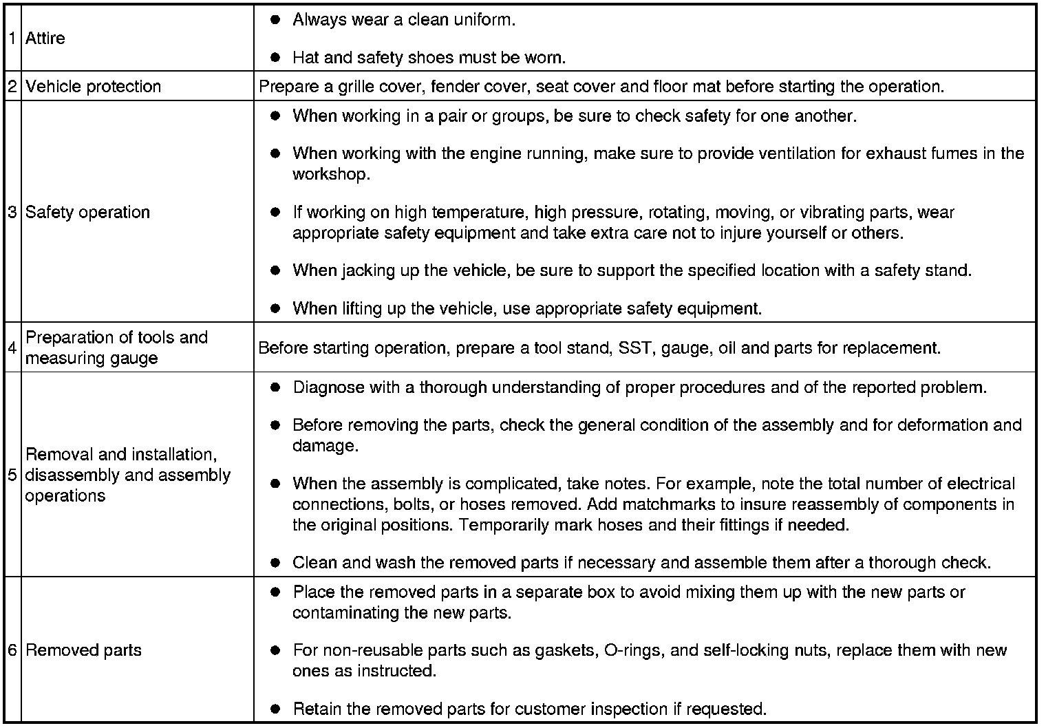 CAUTION: Failure to carry out the service operations in the correct sequence could cause the SRS to unexpectedly deploy during servicing and lead to serious injury. Furthermore, if a mistake is made when servicing SRS, it is possible that the SRS may fail to operate properly. Before servicing (including removal or installation of parts, inspection or replacement), be sure to read the following section carefully.
