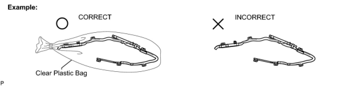 (1) Always place a removed or new curtain shield airbag assembly in a clear plastic bag, and keep it in a safe place.