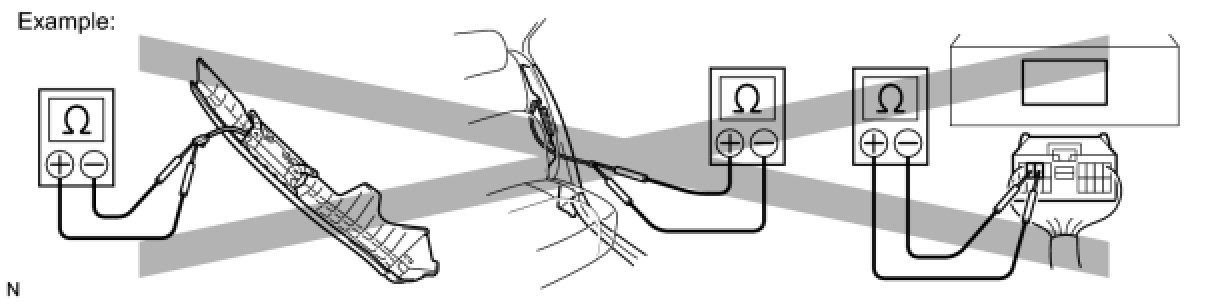 (1) Never measure the resistance of the seat outer belt. This may cause the pretensioner of the seat belt to activate, which could cause serious injury.