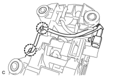 (d) Install the indicator light wire to the 2 clamps on the lower shift lever assembly.