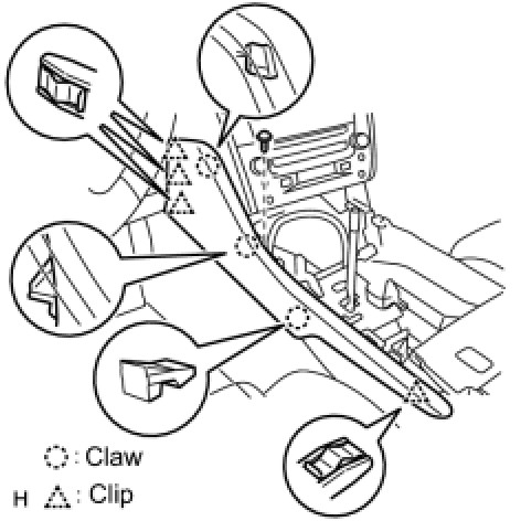 (a) Attach the 3 clips and 3 claws to install the finish panel end.
