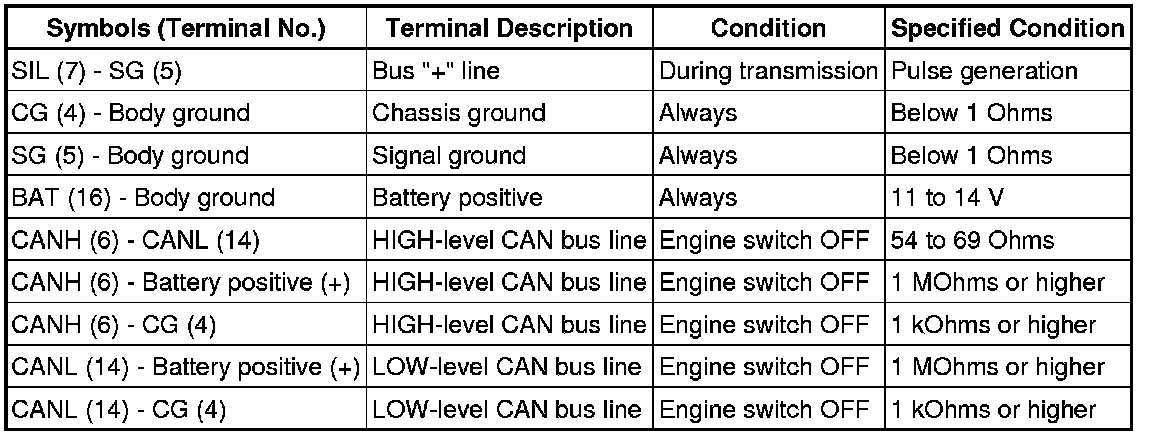 If the result is not as specified, the DLC3 may have a malfunction. Repair or replace the harness and connector.