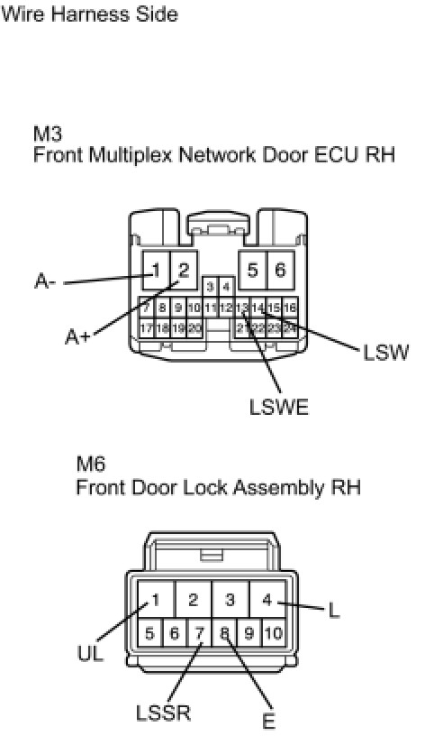 5. CHECK WIRE HARNESS (PASSENGER DOOR ECU - FRONT DOOR LOCK ASSEMBLY RH)