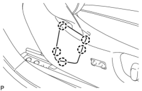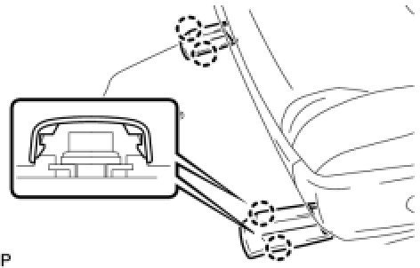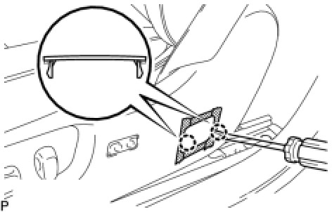 (a) Using a screwdriver, detach the 2 claws and remove the front seat belt hole cover.