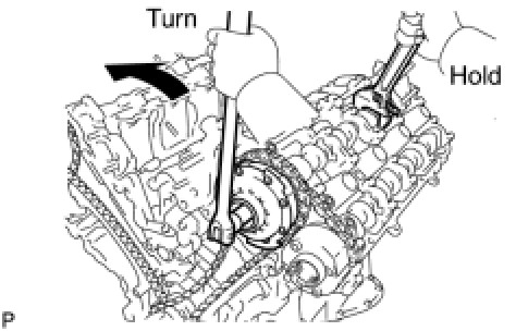 (c) Hold the hexagonal portion of the camshaft with a wrench and loosen the bolt.