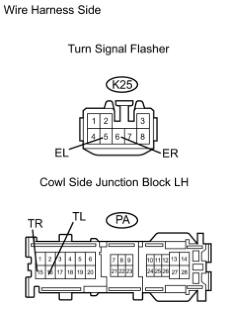 (1) Disconnect the K25 flasher connector.