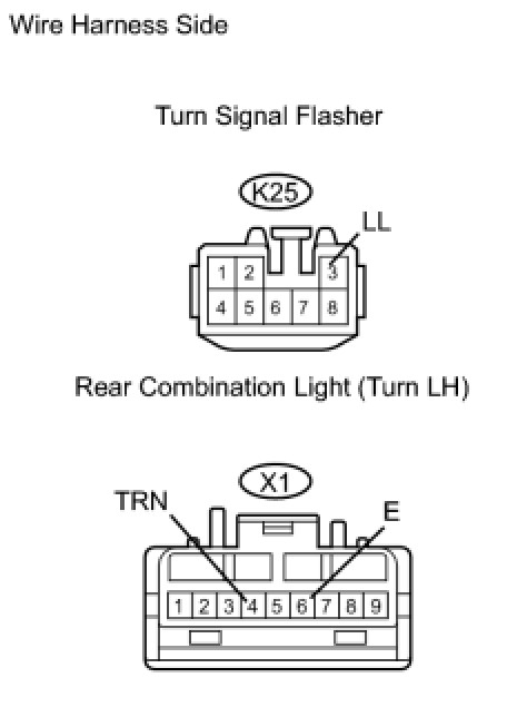 (a) Check the wire harness between the rear combination light (turn LH) and turn signal flasher, and the rear combination light (turn LH) and body ground.