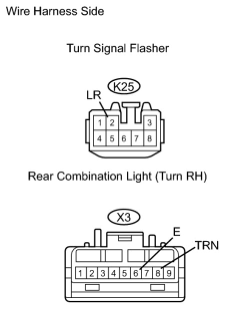 (b) Check the wire harness between the rear combination light (turn RH) and turn signal flasher, and the rear combination light (turn RH) and body ground.
