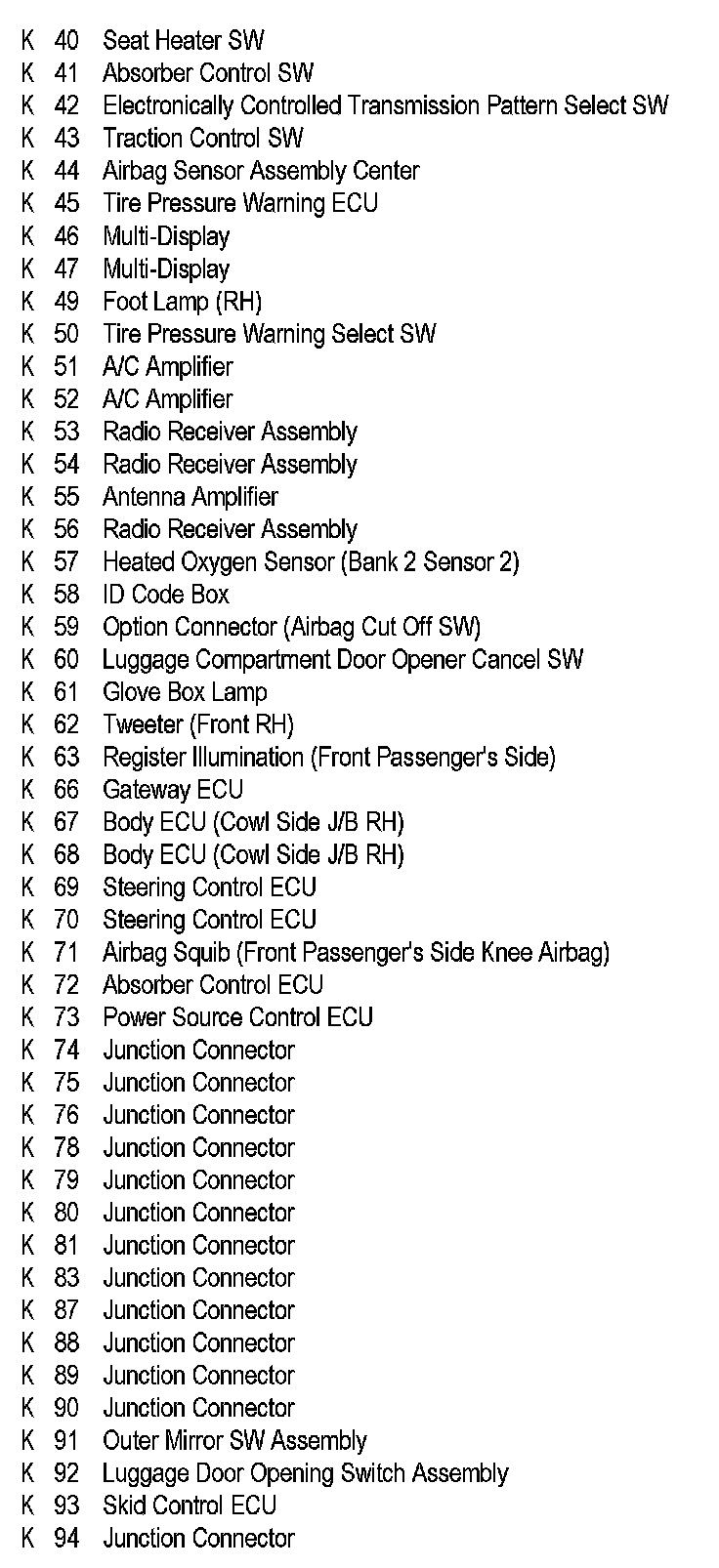 Position of Parts In Instrument Panel